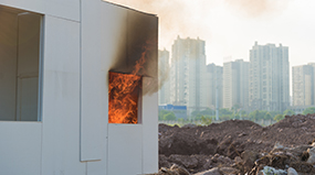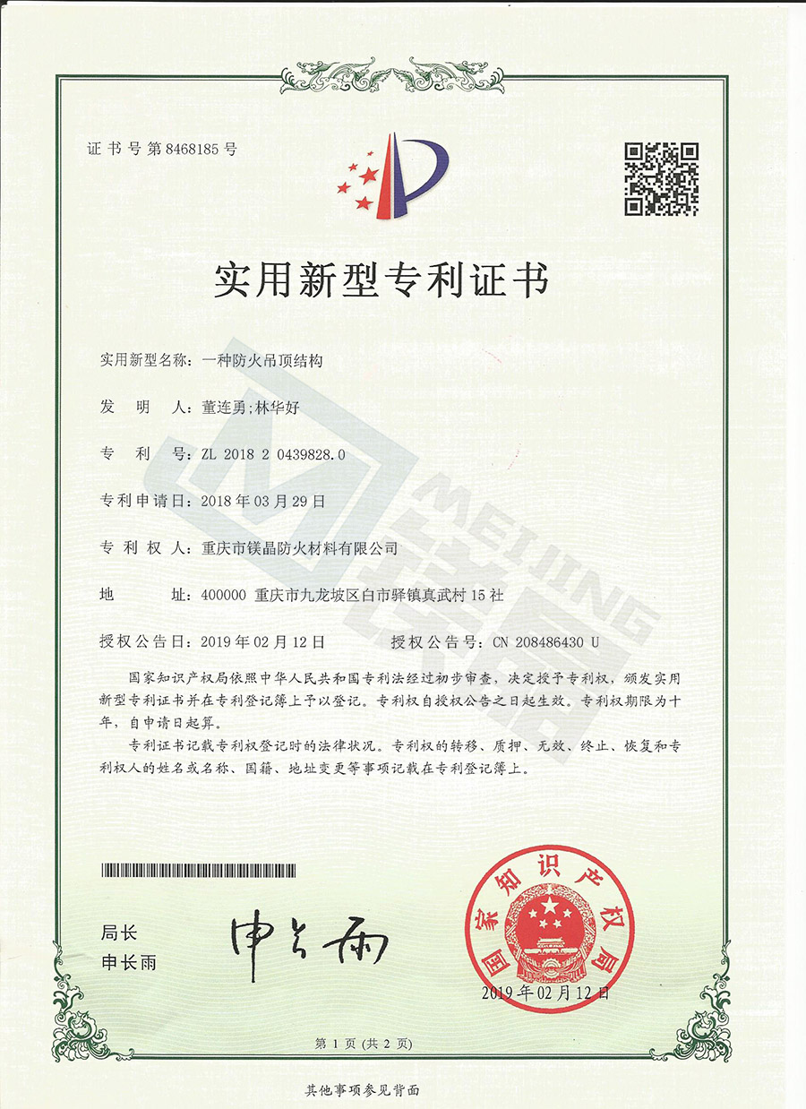 鎂晶板有良好防火性能,是不燃板材,火焰持續燃燒時間為零,耐高溫2800℃,達到燃燒性能A1級標準,與龍骨+巖棉制作的隔斷系統,耐火時間達到4小時,遇火燃燒的過程中能夠吸收大量的熱能,延遲周圍環境溫度的升高。